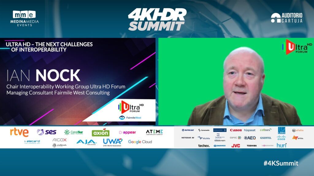 Por su parte, Ian Nock, Chair Interoperability Working Group del Ultra HD Forum y Managing Consultant de Fairmile West Consulting, recordó que la organización lleva una década trabajando por la interoperabilidad y las buenas prácticas en Ultra HD. En su intervención, señaló que “el valor real del Ultra HD no está solo en la resolución, sino en el HDR, la amplia gama de color y el audio de nueva generación”. Nock reconoció que la transición hacia estas tecnologías es “una evolución gradual”, con desafíos en la integración entre contenido HDR y SDR, y destacó la necesidad de “educar al consumidor sobre la importancia de las pantallas adecuadas”.
