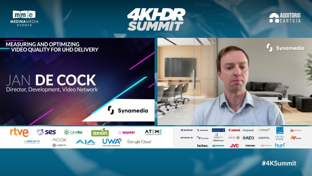 Jan de Cock, Director of Development, Video Network en Synamedia, presentó los desarrollos de la compañía en la medición y optimización de la calidad de vídeo UHD, con herramientas que aplican inteligencia artificial y aprendizaje automático. Introdujo el PVMAF, una versión predictiva del algoritmo VMAF “hasta 100 veces más rápida”, diseñada para vídeo en directo. También presentó el sistema Live Video Quality Agent, que permite comparar y supervisar señales en tiempo real. “Estas herramientas permiten optimizar costes, mejorar flujos de trabajo y tomar decisiones basadas en datos”, afirmó, destacando que la inteligencia artificial “ya está integrada en todos nuestros procesos”.
