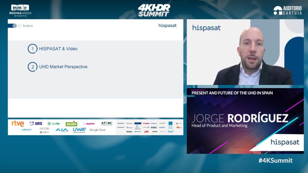 Jorge Rodríguez, Head of Product and Marketing de Hispasat, abrió la jornada destacando el papel del satélite como “medio eficiente y sostenible para la distribución de contenidos en Ultra Alta Definición”. Presentó un estudio que sitúa al satélite como “la segunda opción más eficiente en consumo energético, solo detrás de la TDT”. Además, recordó que la compañía ya alcanza más de 1,4 millones de usuarios en Latinoamérica y apuntó que “aunque la adopción de televisores 4K crece rápidamente, el número de canales UHD sigue siendo bajo”. De este modo, propuso impulsar la transición de la TDT hacia la UHD y mejorar la comunicación con los usuarios para “fomentar su comprensión y adopción”.