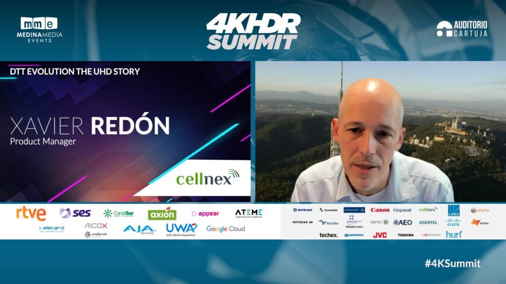 Xavi Redón, Product Manager de Cellnex, ofreció un recorrido histórico sobre la evolución de la Televisión Digital Terrestre (TDT) en España hasta la llegada de la Ultra Alta Definición, cuya “adopción total” estima “entre 2027 y 2030”. Destacó que España lidera mundialmente las emisiones UHD por TDT y abogó por que “una normativa que exige televisores de más de 40 pulgadas compatibles con 4K facilitará esta transición”. Tomando datos de una encuesta realizada por UHD Spain, resaltó que “el 66 % de los hogares españoles tienen condiciones adecuadas para el 4K, aunque menos de la mitad están preparados”. Sobre Cellnex, indicó que la mayor compañía de infraestructuras de España emplea inteligencia artificial para optimizar la gestión de redes, automatizar procesos y planificar futuras infraestructuras.