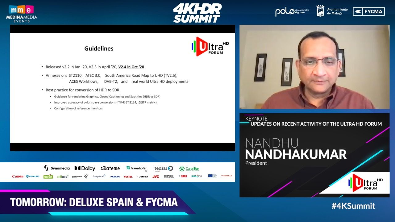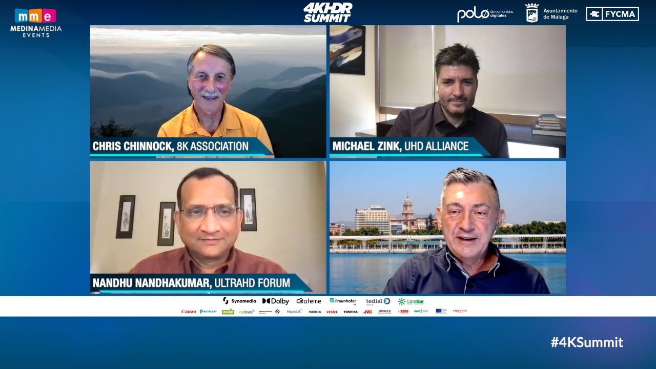 Después de sus presentaciones, Nandhakumar, Zink y Chinnock han protagonizado un panel, en el que han puesto en común su visión sobre la situación actual y futura de la Ultra Alta Definición a nivel mundial y sobre experiencias deportivas como Tokio 2020. También en esta sesión han dado la bienvenida a UHD Spain, a la que apadrinaron en su concepción las tres asociaciones, siendo la asociación española la primera que cuenta desde su nacimiento con este apadrinamiento múltiple, y que ha situado a España al mismo nivel organizativo en UHD que Italia, Francia, Alemania y Gran Bretaña.