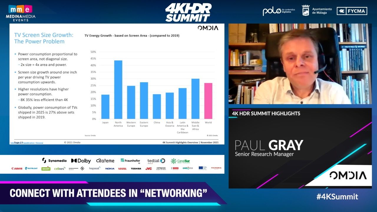 El broche final a este “Presidents’ Day” lo ha puesto Paul Gray, consultor principal de OMDIA, para hacer, como hace habitualmente, el resumen y las conclusiones de esta séptima edición de la 4KHDR Summit. «Una de las mayores decepciones ha sido la escasez de emisiones en UHD de la Eurocopa 2020, que ha estado ausente en algunos países de la UE. Italia, Polonia y Turquía son los únicos países de Europa con cobertura de emisión en abiert».