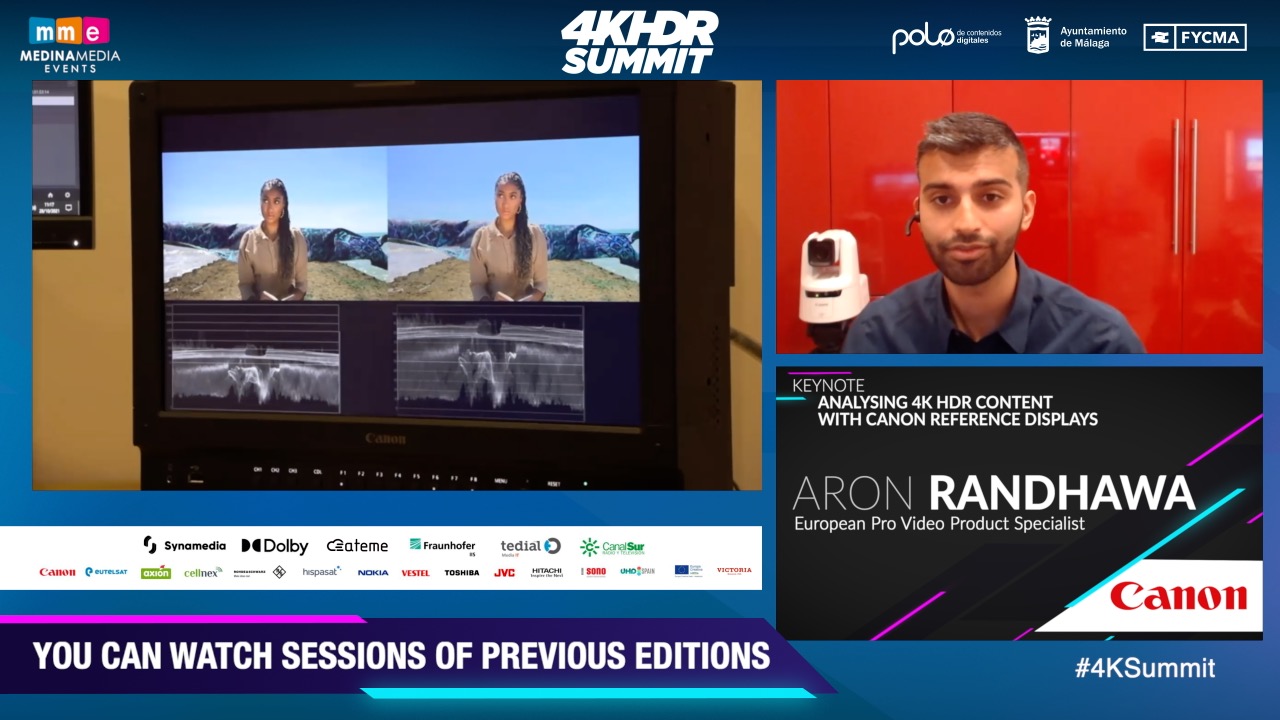 Por su parte Aron Randhawa, de Canon, habló sobre HDR y las funciones que permiten los monitores de referencia de Canon: «pueden ayudar a entender completamente la señal, tanto si se encuentra en el mundo del cine como en el de la monitorización en directo o en la industria de la radiodifusión».